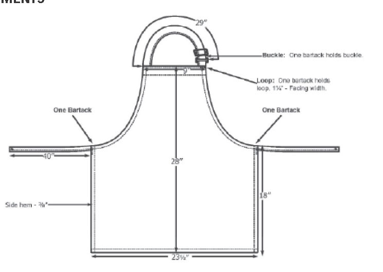 Bib apron with no pockets is a kitchen essential. The neck slide provides easy adjustment. 65% Polyester/35% Cotton twill; 7 oz. wt. Size: 28L X 24W long ties for back or front closure. Machine washable. One size fits most.